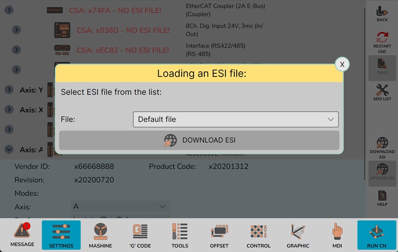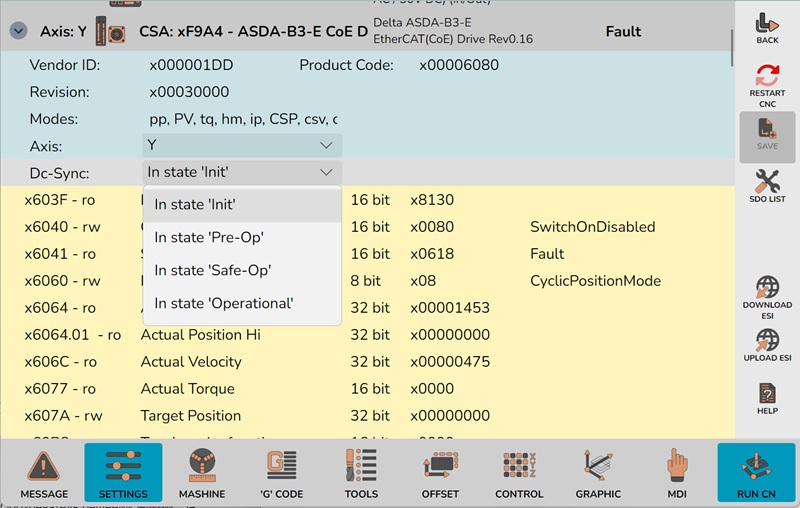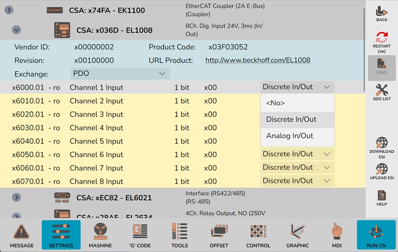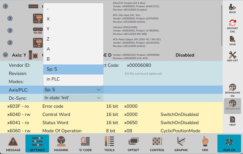 Если все подключено правильно ЧПУ должна была увидеть и прочитать все устройства EtherCat