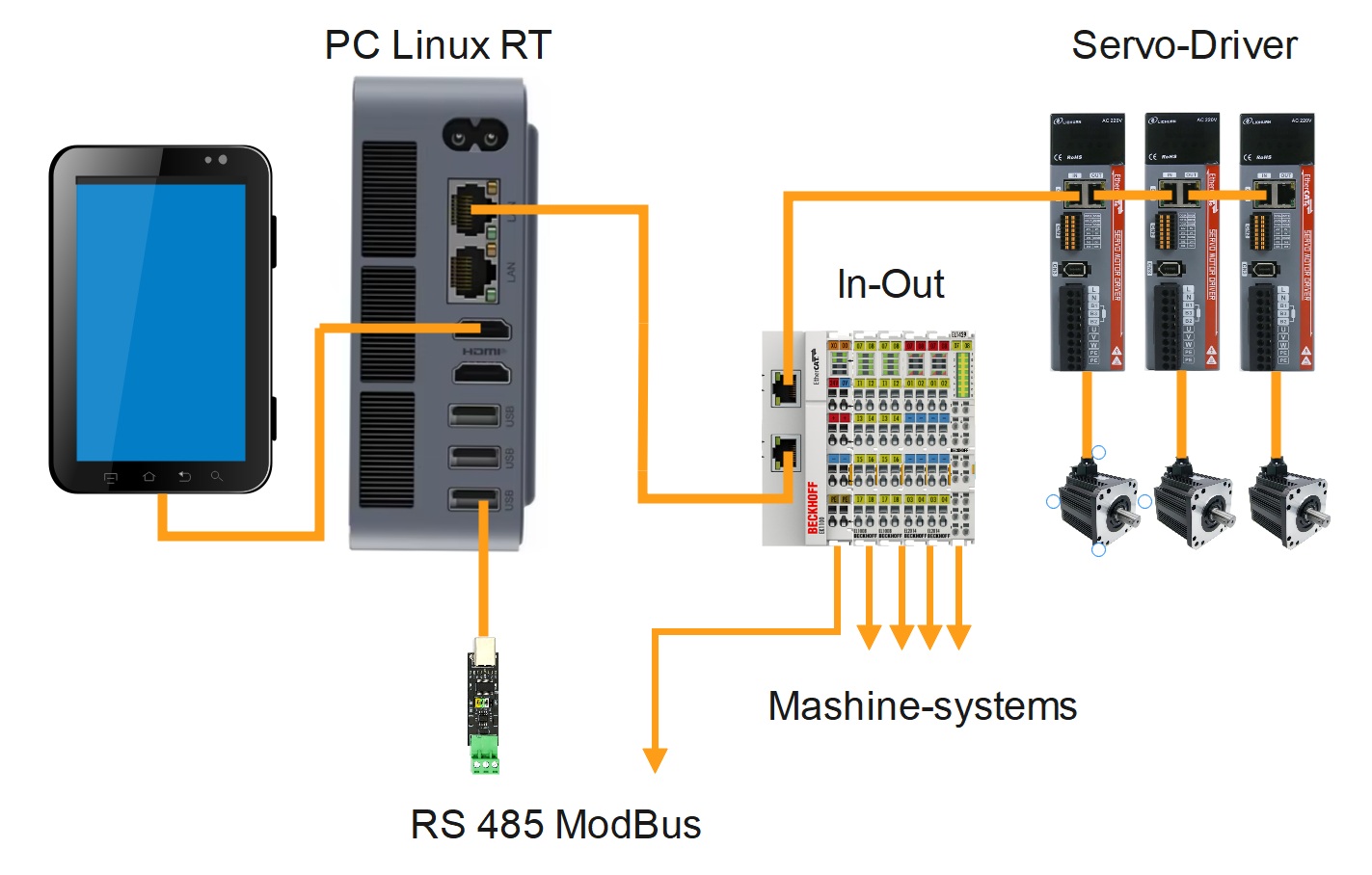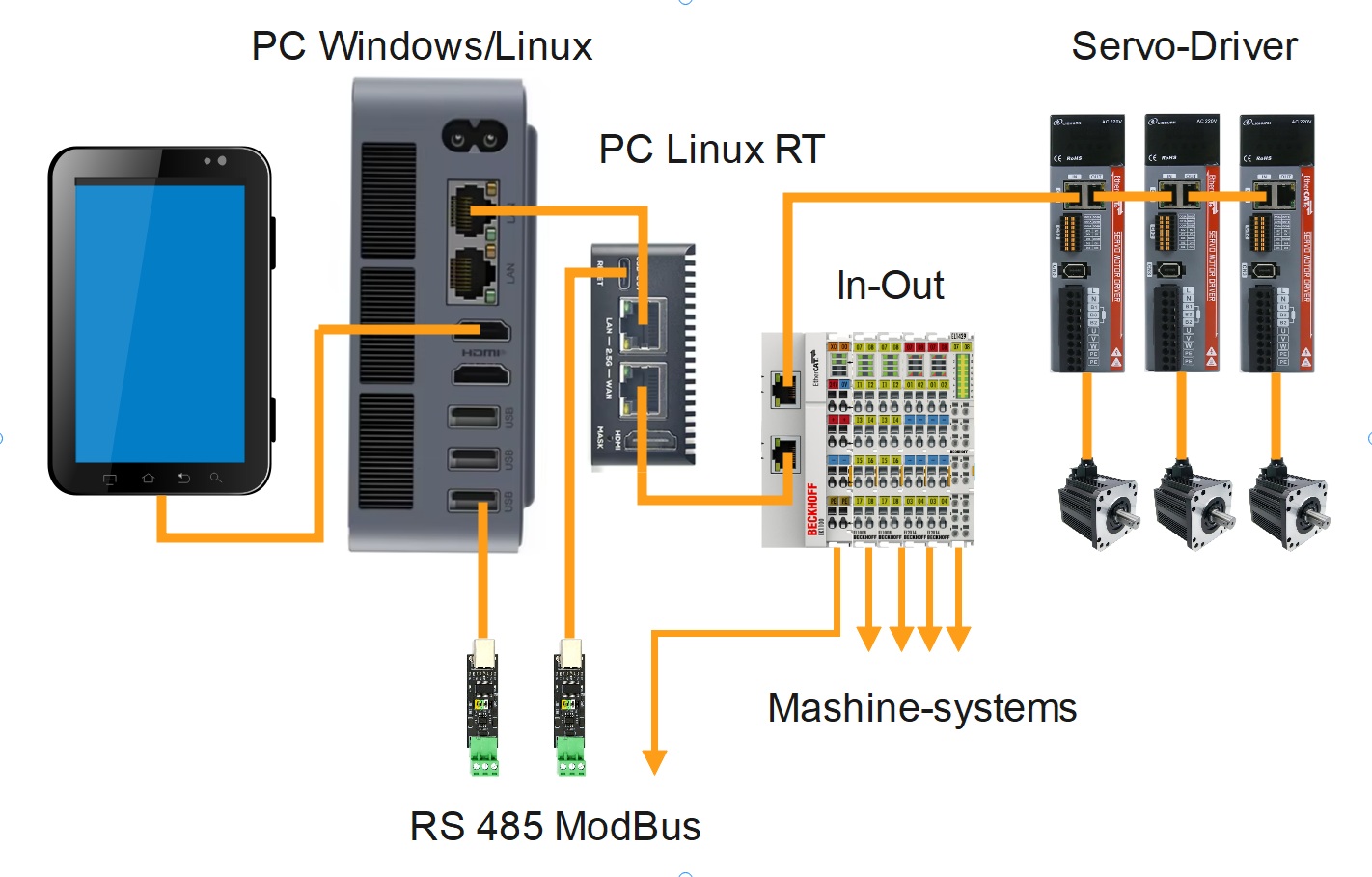 Схема подключения ЧПУ к системе EtherCat с помощью одного PC:
