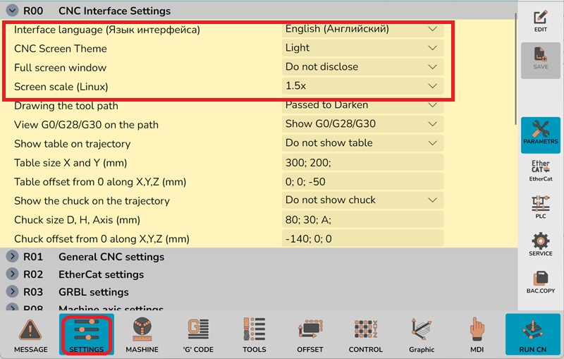 • Тема экрана ЧПУ - Выберите нужную тему - темную или светлую