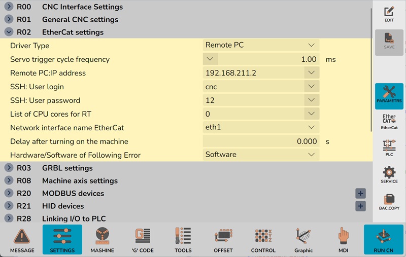 Зайдите в "Настройки", далее справа кнопка "EtherCat").
