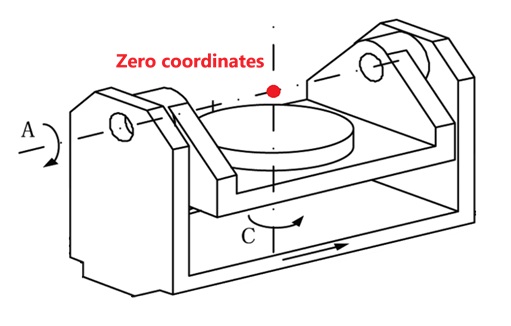 - Если у Вас две оси вращения, то нулевые машинные координаты по X и Y и Z должны совпадатm c точкой пересечения осей вращения.